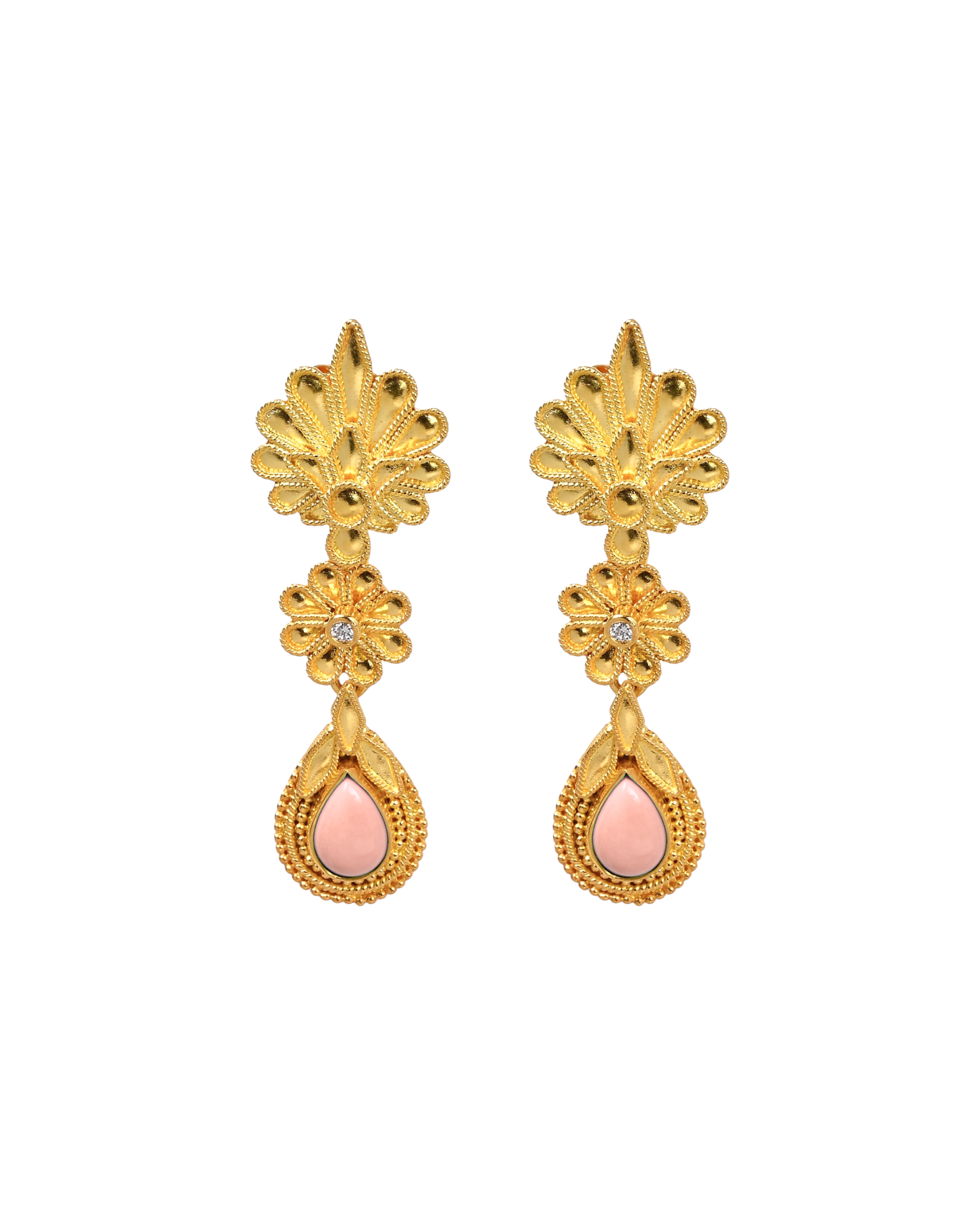 Hand-crafted in 18K gold, Anthos gracefully unfolds into eight petals, embracing at their center a delicate brilliant-cut diamond, a subtle spark of energy that radiates beautifully on the one who wears it.